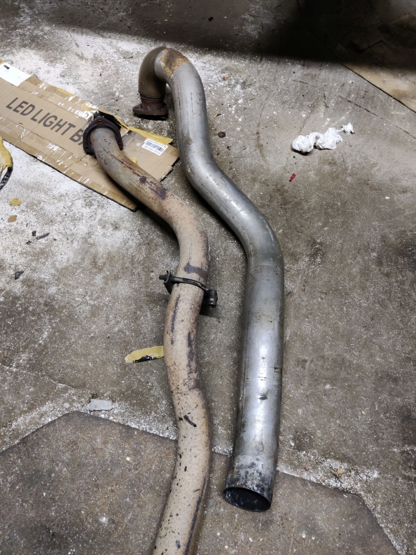 Hhär är den gamla downpipen och den nya 3″ som dessutom är lite mer utsvängd vid turbon.