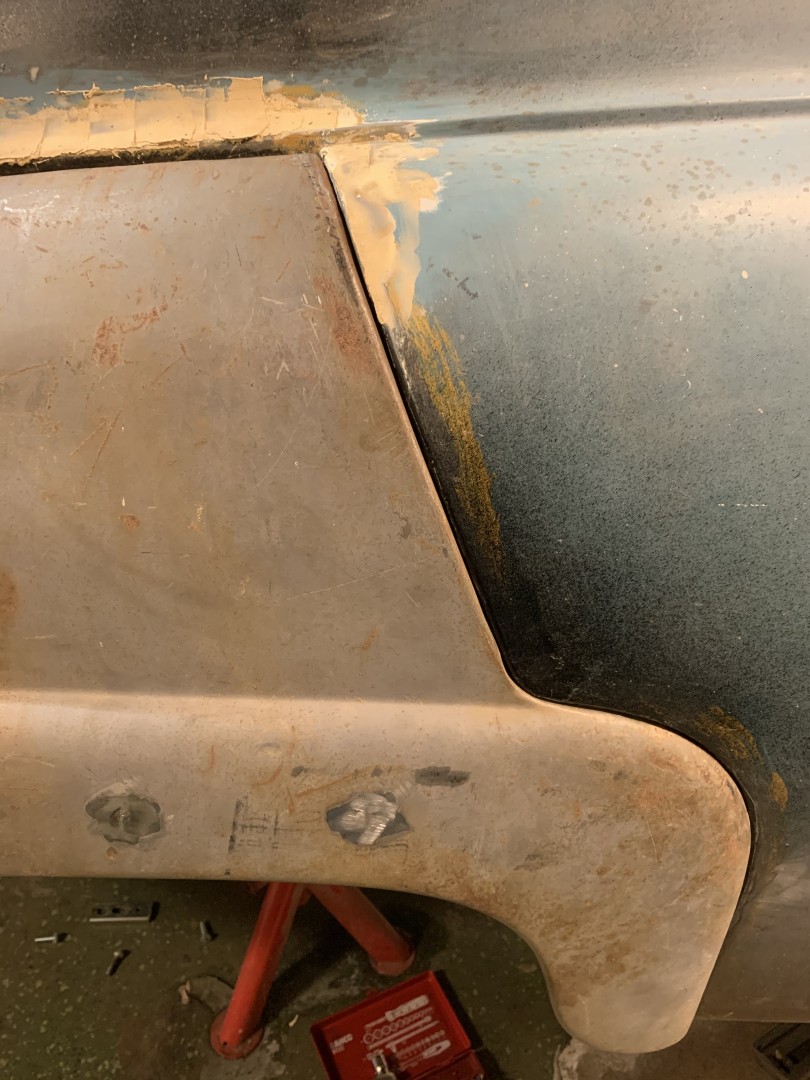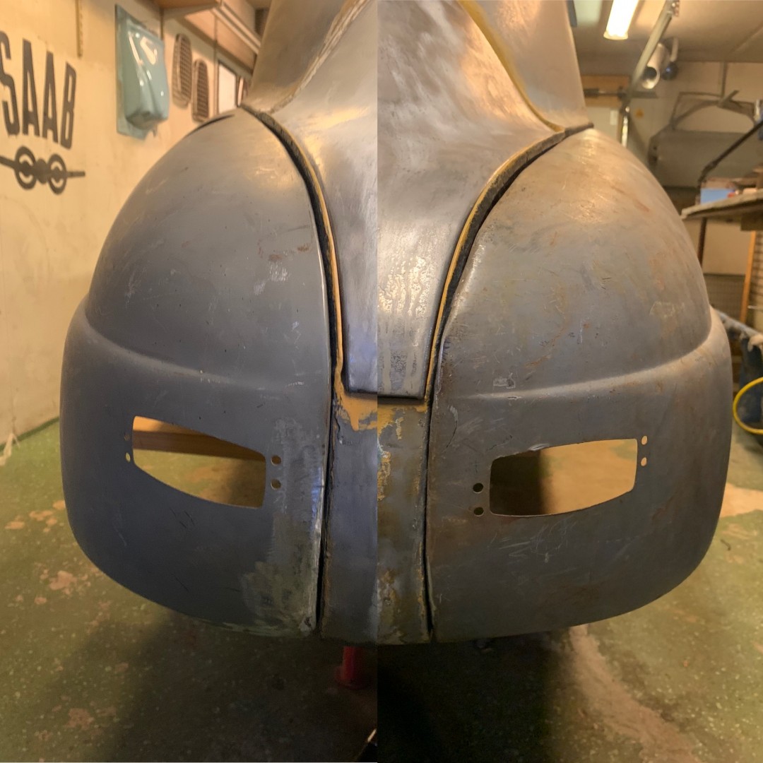 Har lyft på, bankat, lyft av, bankat osv osv på vänster bakskärm så nu är jag skapligt nöjd med den och ska sätta tänderna i dörr tänkte jag.Attachments: