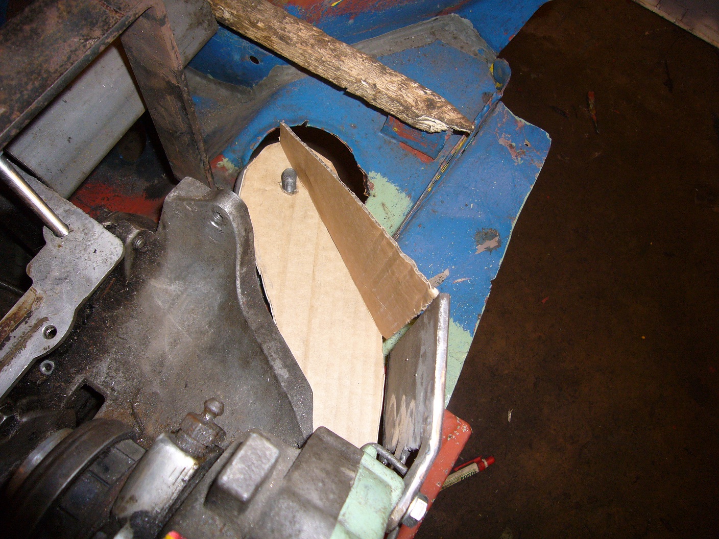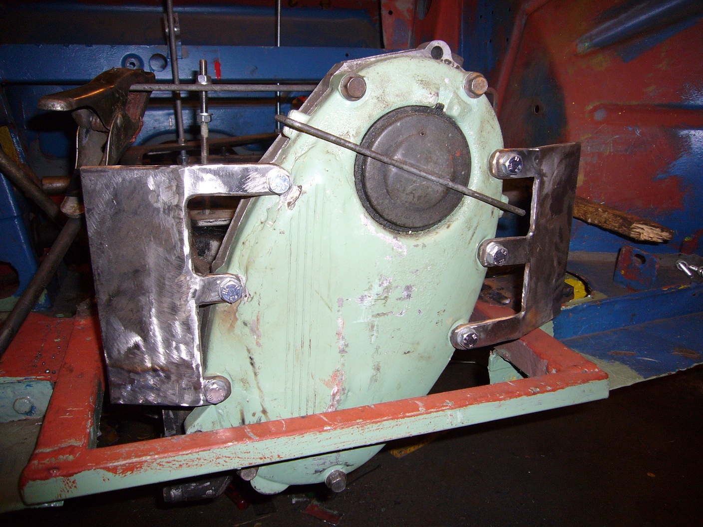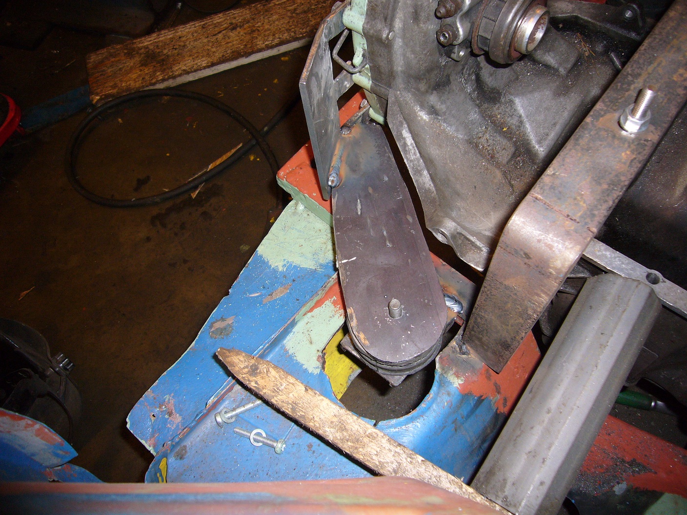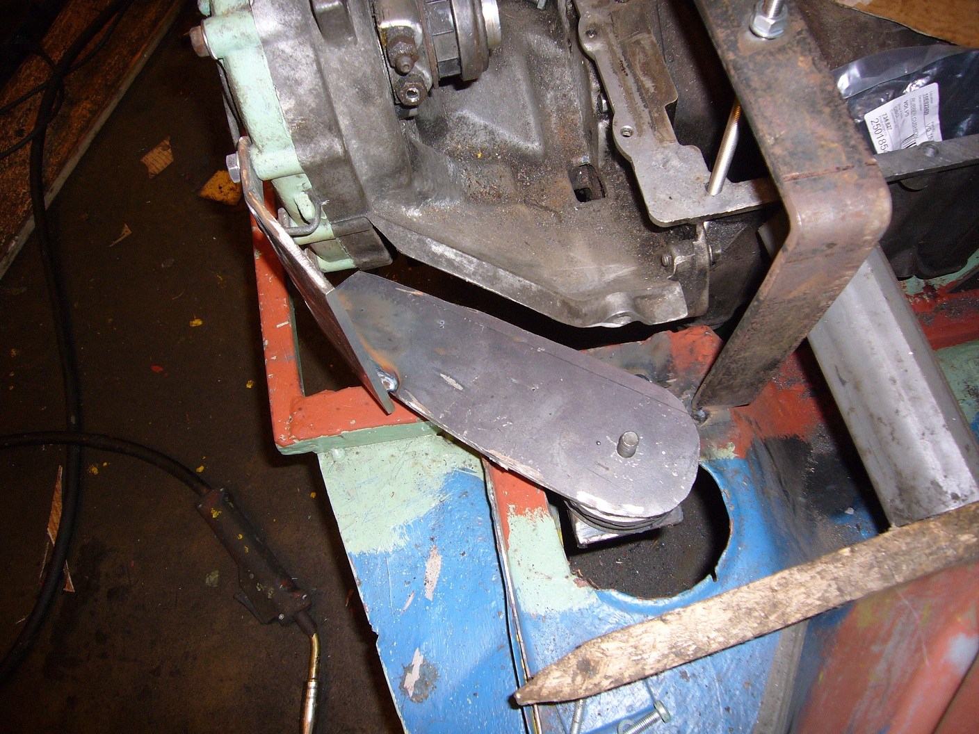 Även att jag har kommit in i en komplicerad fas ställer till det en hel del. Har justerat lådan fram och tillbaka i motorutrymmet, det är lättare sagt än gjort att få en saab 900 låda att hamna i mitten i ett främmande motorutrymme. Inte en sida är den andra lik, den är väldigt asymmetrisk. Sen så fick jag konstruera en ställning (fel polare hjälpte mig) som gjorde att man kunde få lådan lodrätt i motorutrymmet (det är där gängstången kommer in i bilden, då kan man justera höjden både bak och fram och få den plan) var även tvungen att loda in bilen så den blev rak och låna en laser av garageägaren för se att låda inte hamna snett i motorutrymmet, så det har varit mycket mäckel. Men på plats kom hon
