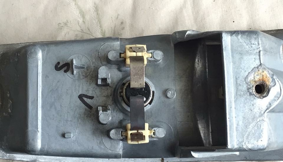 Tillbaka till vesäntligheter. 🙂 …för att fortsätta US-temat så kunde jag inte låta bli att koppla om för en tvåtråds 5W/21W lampa i blinkarmaturen för att kunna ha orange posmarkör om andan faller på. Det var förhållandevis smidigt att ordna då lamphållare och gjutning är förberedd för detta. Det som behöver göras är att komplettera med en extra ”tunga” från en donatorinsats för plusmatningen samt flytta den befintliga ”tungan” 90 grader enligt nedan bild 🙂