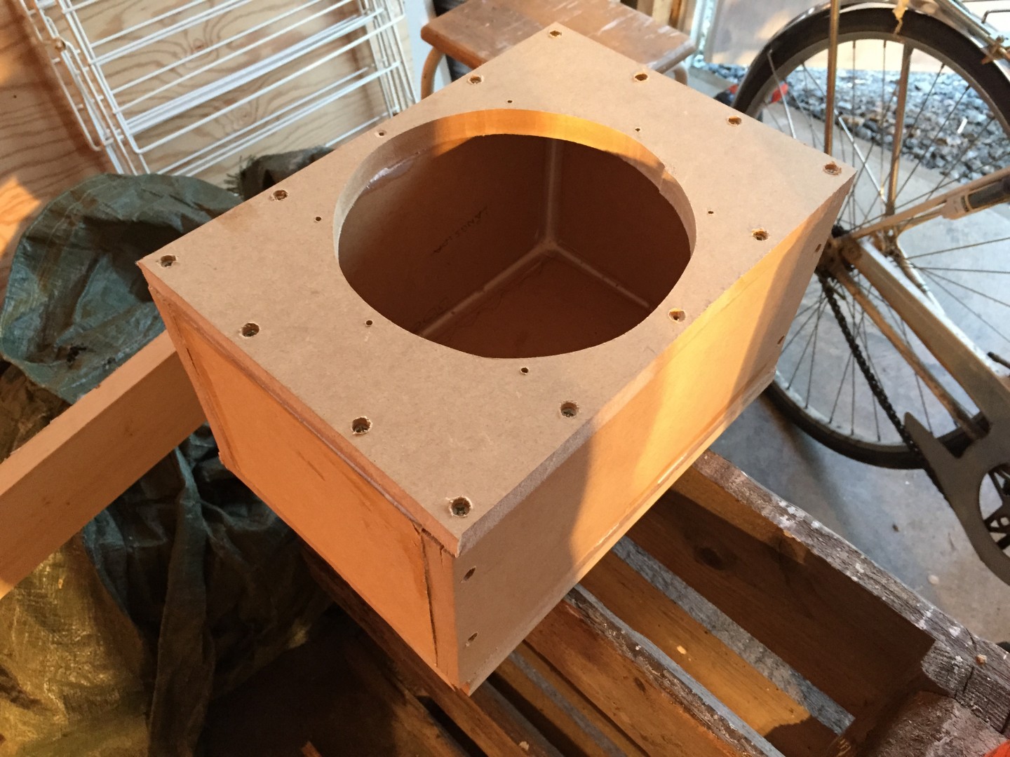 Har under några kvällar sista veckan byggt en budgetbaslåda av överblivna grejjer från gömmorna. Dags att åter skaka liv i min 8″ BIltema bashögtalare inköpt år 2000 🙂