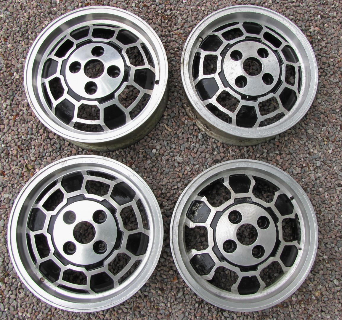 Fyra SAAB 99 svarvade EMS-fälgar.