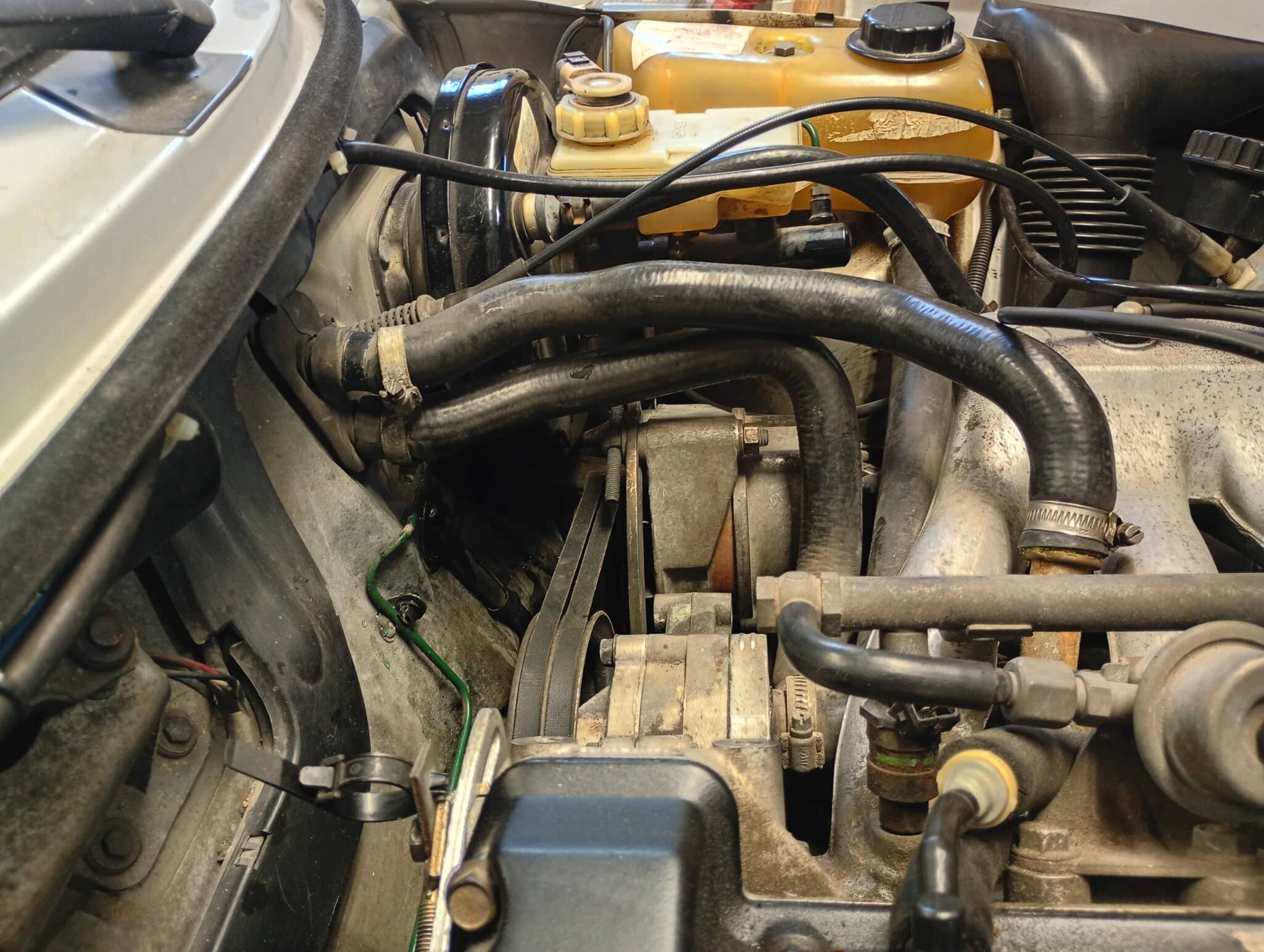 Svängde om mina kablar, jag får bättre rum såhär för AC kompressorns slangar som jag håller på och installerar: