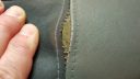 Ska prova att sy med överdraget på plats men det känns tufft, utmaningen är att få tag på ände av den gamla tråden som går att knyta ihop med den nya tråden.Lädret är hårt bortom all rimlighet och nålen snurrar trots näbbtång ?: