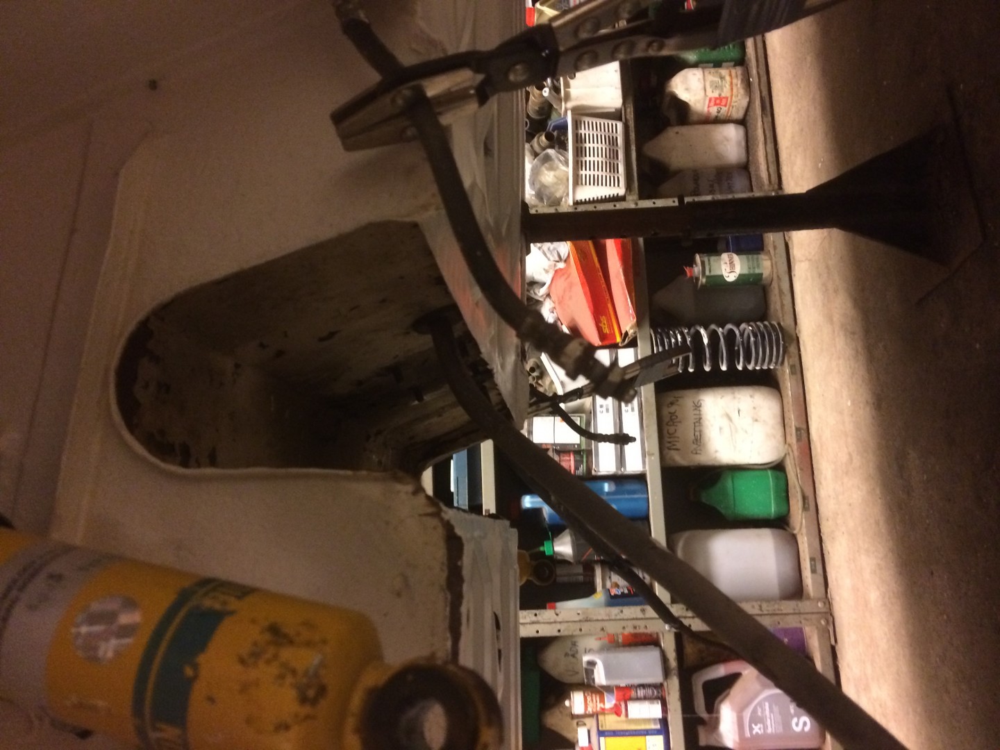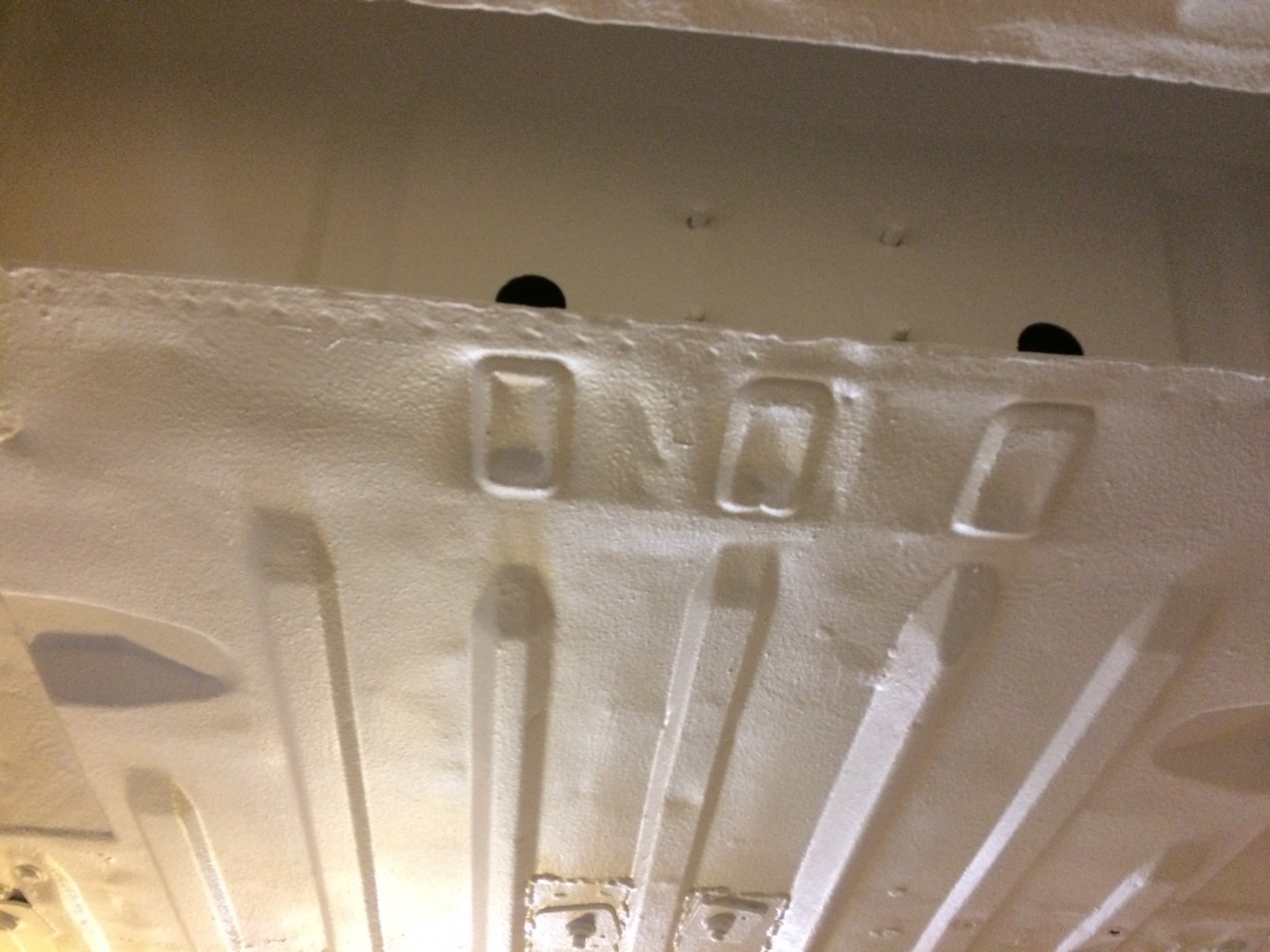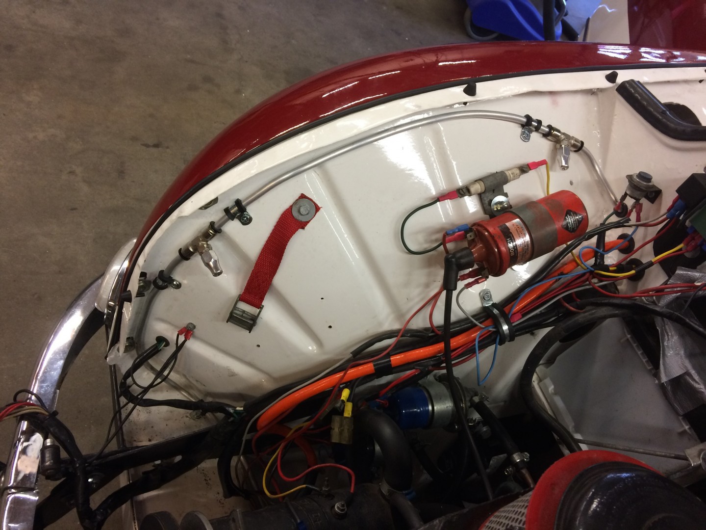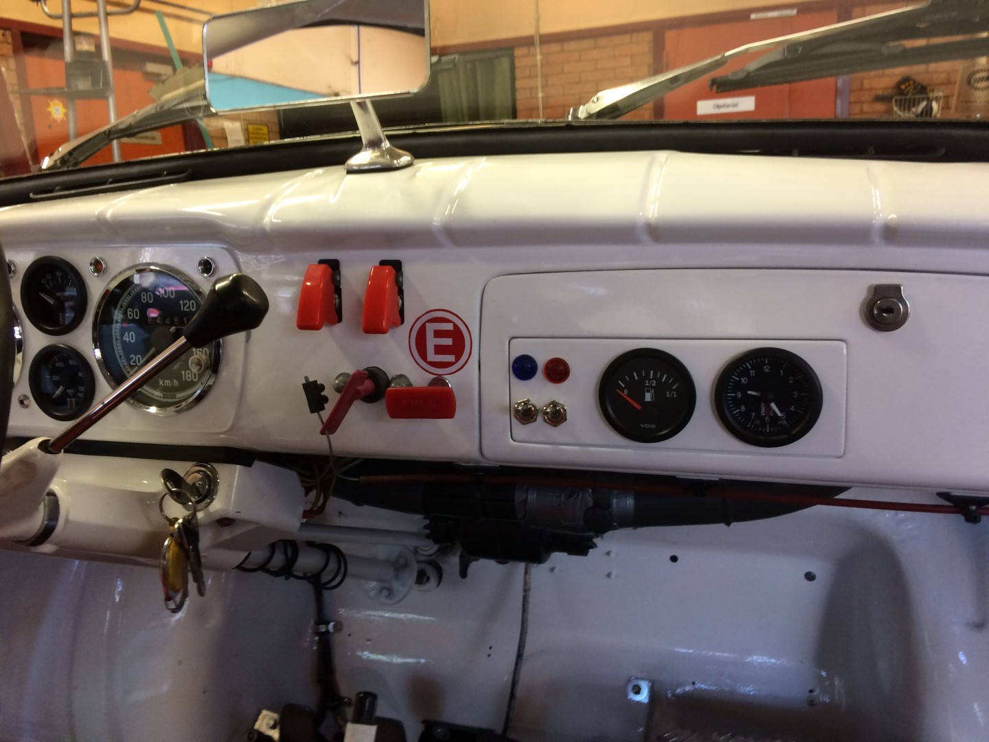 Lackerades i samma vita färg som karossen.Tillbringade en lördag i verkstaden på jobbet och monterade in ett sprinklersystem som krävdes