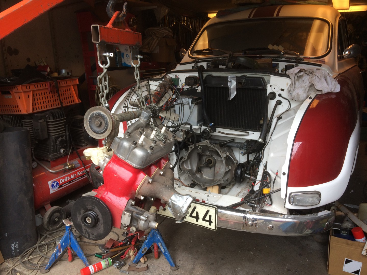 Det blir till att montera ur motor och växellådan igen för att kunna täta läckan i lådan. Inget jobb som jag räknat med men det är ju bara att ta tag i problemen.Förberedelse för HTP-besiktning som genomfördes i kompisens välutrustade garage.