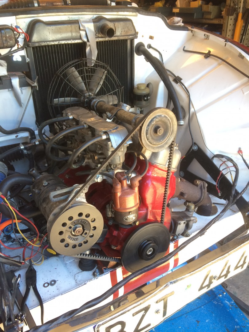en större remskiva till generator/vattenpumpen tillverkas.