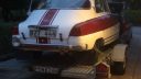Lastade bilen på kärran och for intill jobbet och lånade tvätthallen för att sanera bort all utläckt olja
